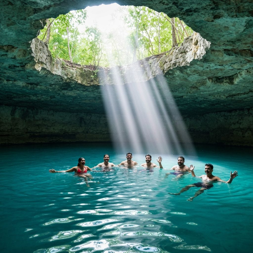 Morning conference sessions. Afternoon choice: Mayan ruins, cenote swimming, or spa. Themed Mexican fiesta gala.