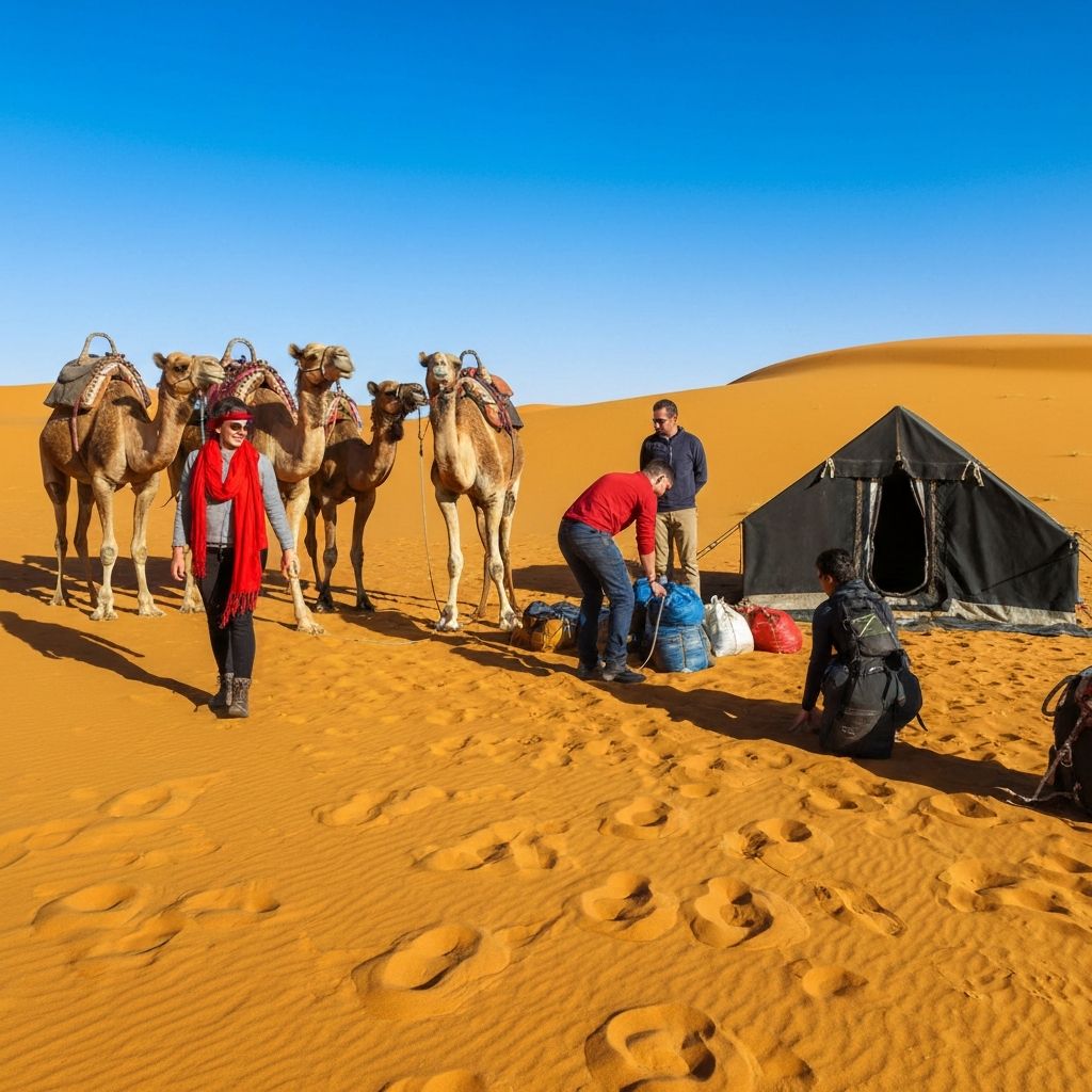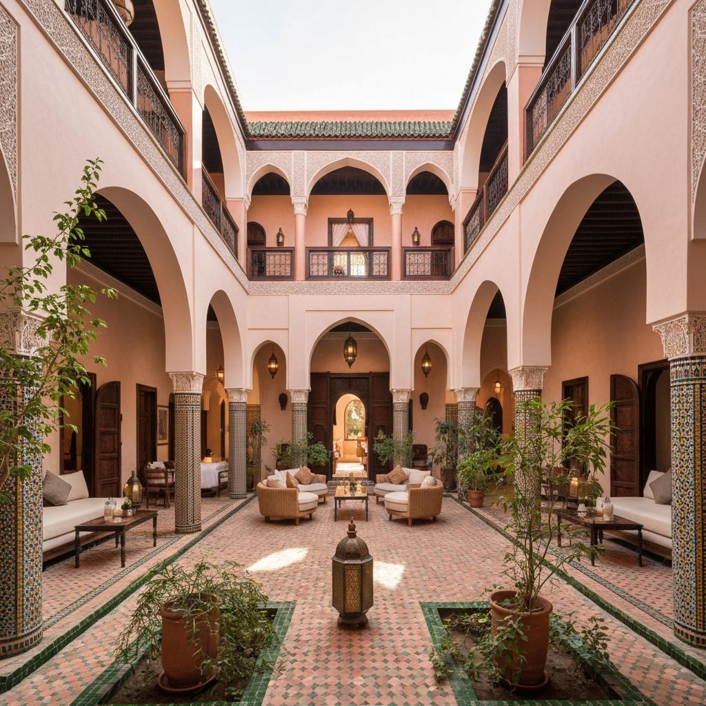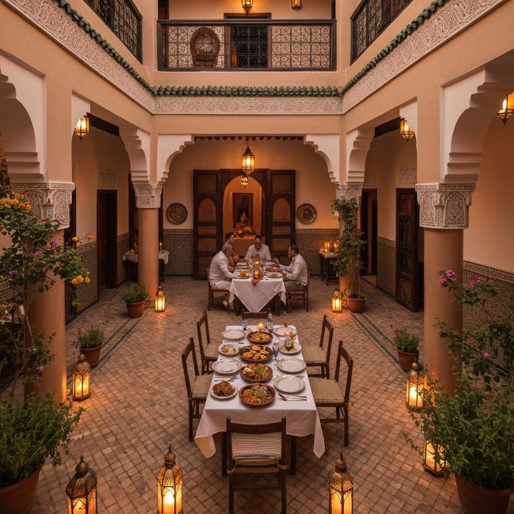 Private airport transfers to luxury riad. Traditional mint tea welcome ceremony. Opening dinner in candlelit courtyard with live music.